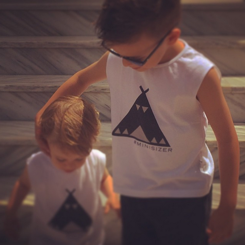 Τα δύο αγοράκια στη φωτογραφία, φοράνε τα ίδια μπλουζάκια, τα οποία ανήκουν στη συλλογή παιδικών ρούχων της μαμάς τους.