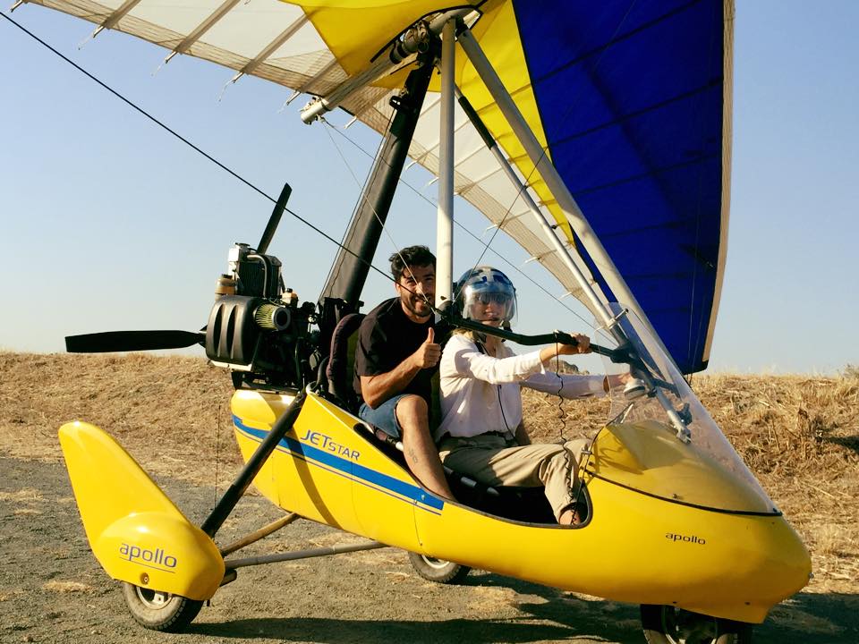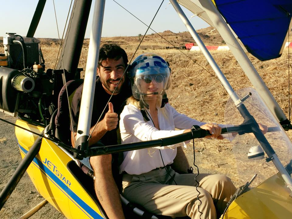 Το ζευγάρι πέταξε με ανεμόπτερο και στις φωτογραφίες φαίνονται να το απολαμβάνουν. Μάλιστα, η Άντρη Καραντώνη στη λεζάντα που συνόδευσε το post της, επισήμανε πως με το τόλμημά τους αυτό, νίκησε τη φοβία της.