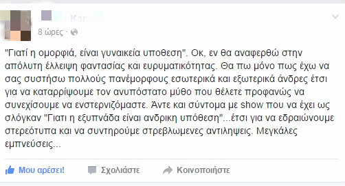 Ήδη έχουν ξεκινήσει τα σχόλια στα μέσα κοινωνικής δικτύωσης, τα οποία εκφράζουν δυσαρέσκεια και κάνουν λόγο για υποτιμητική παρουσίαση των ανδρών.