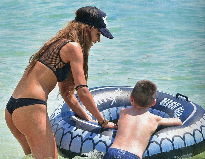 (Σε παραλία της Κεφαλονιάς με τον ανιψιό και βαφτισιμιό της, Γιώργο)