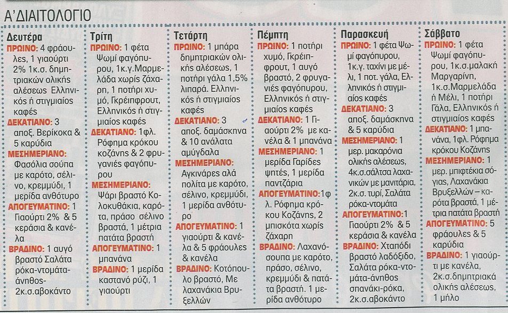 Δείτε την δίαιτα της μέρα με μέρα...