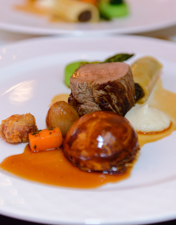 Το μενού περιελάβανε πιάτα πραγματικά απολαυστικά και γεύσεις που αξίζουν βράβευσης. Ξεκίνημα έγινε με σιγοψημένο σολομό με αρωματικά σερβιρισμένο με χτένια με ζελέ πράσινου μήλου. Ένα εξαίσιο πιάτο τιμπάλ σολομού με χτένια σε αβοκάντο, σαλάτα κινόα, μαγιονέζα με σάφρανο. Το κυρίως πιάτο ήταν μια τριλογία μοσχαριού που περιελάβανε ψηρό φιλέτο, κανελόνι από μάγουλα και άγρια μανιτάρια, μπρόκολο, αγκινάρες και σπανάκι σε φύλο κρούστας, γλυκάδια πανέ και εσπούμα μαϊντανόριζας. Τέλος, το επιδόρπιο έκλεψε την παράσταση. Ένα ντελικάτο μους άσπρης σοκολάτας με ζελέ από ρόδι και παντεσπάνι δυόσμου, χλιαρό κέικ πικρής σοκολάτας, με παγωτό γλυκανίσου και σάλτσα μάνγκο. Τα πιάτα ήταν συνοδευμένα από εξαιρετικούς εγχώριου οίνους. Το πρώτο πιάτο συνοδεύτηκε από Viogner 2014, Αργυρίδης, το κυρίως με Shiraz 2013, Βλασίδη και επιδόρπιο με Κουμανδαρία Τσιάκκας 2008.