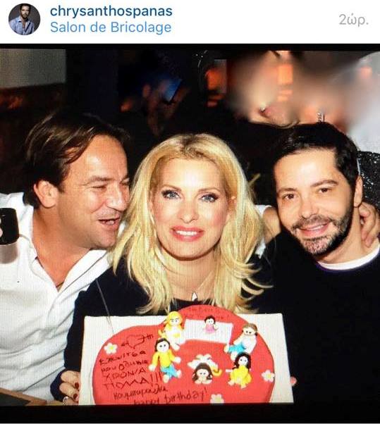 Το βράδυ, η παρουσιάστρια και ο Μάκης Παντζόπουλος επισκέφτηκαν το Salon de Bricolage του Χρύσανθου Πανά για να γιορτάσουν τα γενέθλιά της -ο ίδιος ανέβασε την παρακάτω φωτογραφία που βλέπετε στο λογαριασμό του στο instagram, που έγινε σε λίγη ώρα viral- στο Κολωνάκι και εκεί μαζί με τους κουμπάρους της παρουσιάστριας, τον Κωνσταντή Σπυρόπουλο και την Ελμίνα Κοπελούζου –βάφτισε το 2009 το γιο τους- έσβησε μια υπέροχη τούρτα, στην οποία απεικονιζόταν η ίδια, ο άνδρας της ζωής της, η μικρή τους Μαρίνα αλλά και τα τρία παιδιά της από τον πρώτο της γάμο. Εκεί, σύμφωνα με δημοσιεύμα του "OK!" βρισκόταν και ο Γιάννης Λάτσιος. "Δεν συναντήθηκαν καθόλου. Η Ελένη Μενεγάκη που έφτασε πρώτη στο χώρο βρισκόταν στο εστιατόριο, ενώ ο πρώην σύζυγός της συναντήθηκε με τον Πέτρο Κωστόπουλο και τον σύζυγο της Χρυσούλας Κέρος, Σαμ, για ποτό. Η κοινή παρουσία τους εκεί ήταν απλά σύμπτωση", περιέγραψε πηγή στο "OK!"