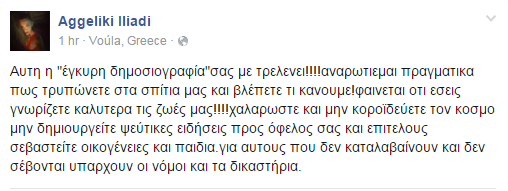 Ωστόσο, η ίδια μέσα από το προσωπικό της προφίλ στο facebook, ξεκαθαρίζει τα πράγματα και διαψεύδει κάτι τέτοιο. Χαρακτηριστικά, η τραγουδίστρια, έγραψε: “Αυτή η "έγκυρη δημοσιογραφία" σας με τρελαίνει!!!!αναρωτιέμαι πραγματικά πως τρυπώνετε στα σπίτια μας και βλέπετε τι κάνουμε! φαίνεται ότι εσείς γνωρίζετε καλύτερα τις ζωές μας!!!! χαλαρώστε και μην κοροϊδεύετε τον κόσμο μην δημιουργείτε ψεύτικες ειδήσεις προς όφελος σας και επιτέλους σεβαστείτε οικογένειες και παιδιά. για αυτούς που δεν καταλαβαίνουν και δεν σέβονται υπάρχουν οι νόμοι και τα δικαστήρια”.