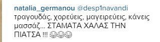 Μάλιστα δεν έλειψαν και τα πειράγματα από τους επώνυμους φίλους της Δέσποινας Βανδή. Δείτε τι της έγραψε η Ναταλία Γερμανού: