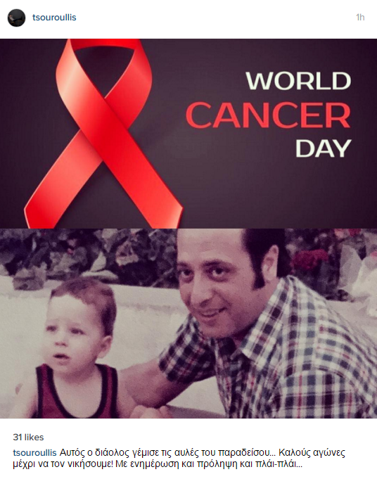 Με αφορμή την Παγκόσμια Ημέρα κατά του καρκίνου ο διευθυντής συγκροτήματος ΔΙΑΣ και τηλεόρασης ΣΙΓΜΑ, ανήρτησε μία φωτογραφία στα social media, όπου απεικονίζεται ο ίδιος σε μικρή ηλικία αγκαλιά με τον πατέρα του, ο οποίος “έφυγε” νικημένος από την επάρατο νόσο.