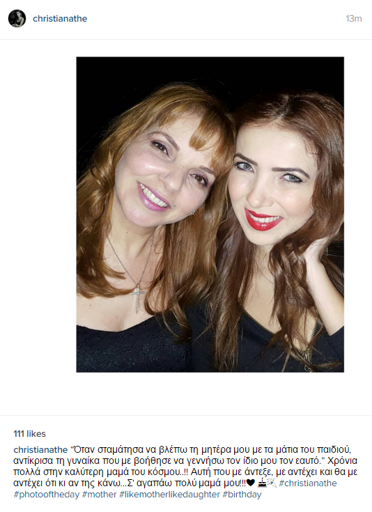 Η πρωταγωνίστρια της νέας σειράς του ΣΙΓΜΑ “Βρέχει έρωτα”, Χριστιάνα Θεοδώρου, θέλησε να ευχηθεί στην αγαπημένη της μητέρα για τα γενέθλιά της, και δημόσια αναρτώντας μία φωτογραφία των δύο τους αγκαλιά, καθώς επίσης, και πολύ τρυφερά λόγια στη λεζάντα που τη συνόδευσε.