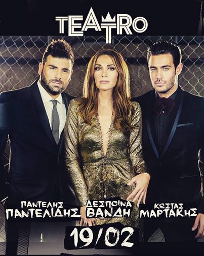 Να σημειωθεί ότι αύριο ο Παντελής Παντελίδης έκανε πρεμιέρα στο TEATRO με τη Δέσποινα Βανδή και τον Κώστα Μαρτάκη.