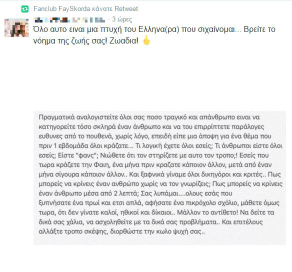 Δείτε παρακάτω τα σχόλια και την συμπαράσταση των followers της:
