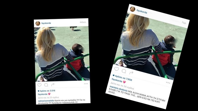 Στενός συνεργάτης της Φαίης Σκορδά παρακολουθεί πλέον συνέχεια τους λογαριασμούς της στα μέσα κοινωνικής δικτύωσης και συγκεκριμένα αυτόν στο instagram. Μάλιστα άλλο πρόσωπο φροντίζει να τσεκάρει τον λογαριασμό κατά τη διάρκεια της νύχτας. Το κακό έγινε και αυτό το Σαββατοκύριακο και τάραξε πολύ την παρουσιάστρια. Τι κι αν τα δύο σχόλια κατέβηκαν λίγο αργότερα; Αρκετός κόσμος τα είδε όπως θα τα δείτε και εσείς τώρα… Η Φαίη λοιπόν ανέβασε μια φωτογραφία πλάτη με τον μικρότερό της και γιο και μέσα στα πολύ τρυφερά και αγαπησιάρικα σχόλια υπήρξαν και δύο που ενόχλησαν πάρα πολύ την πρωινή οικοδέσποινα του ΑΝΤ1. "Μια άλλη μάνα κλαίει για το παιδί της αυτή τη στιγμή. Δεν έχω να πω κάτι άλλο" ήταν το πρώτο ενώ νωρίτερα είχε προηγηθεί ακόμη χειρότερο: "Κράτα και μια ομπρέλα, για τα φτυσίματα, αμόρφωτο τηλεσκουπίδι". Οι πληρoφορίες μας λένε πως η Φαίη έγινε κουρέλι και αποφάσισε να κλείσει οριστικά τον λογαριασμό της ωστόσο ο Γιώργος Λιάγκας την απέτρεψε με το σκεπτικό πως δεν έχει να φοβηθεί κανέναν και τίποτα.