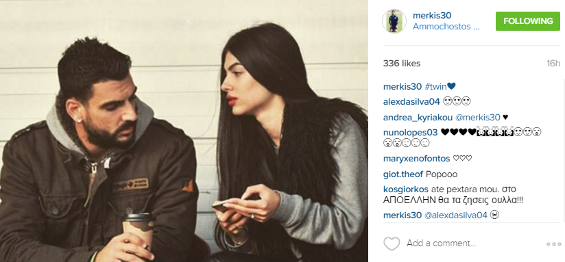 Εκείνος ανήρτησε μία φωτογραφία των δύο τους στις κερκίδες ενώ το νεαρό μοντέλο δεν δίστασε να σχολιάσει αφήνοντας στα σχόλια μία καρδιά. Η Άντρεα Κυριάκου, βρίσκεται συνέχεια στο πλευρό του συντρόφου της σε όλους τους αγώνες του στηρίζοντάς τον.