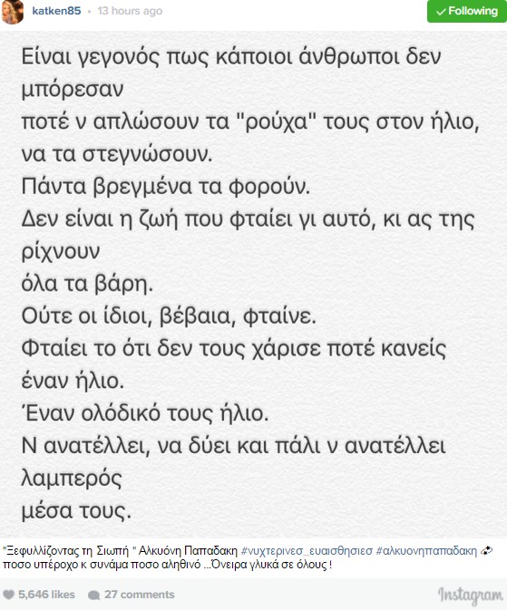 Η Κατερίνα Καινούργιου μετά το δημοσίευμα ανήρτησε την παρακάτω εικόνα-μήνυμα. «Πόσο υπέροχο κ συνάμα πόσο αληθινό …Όνειρα γλυκά σε όλους!», σχολίασε.