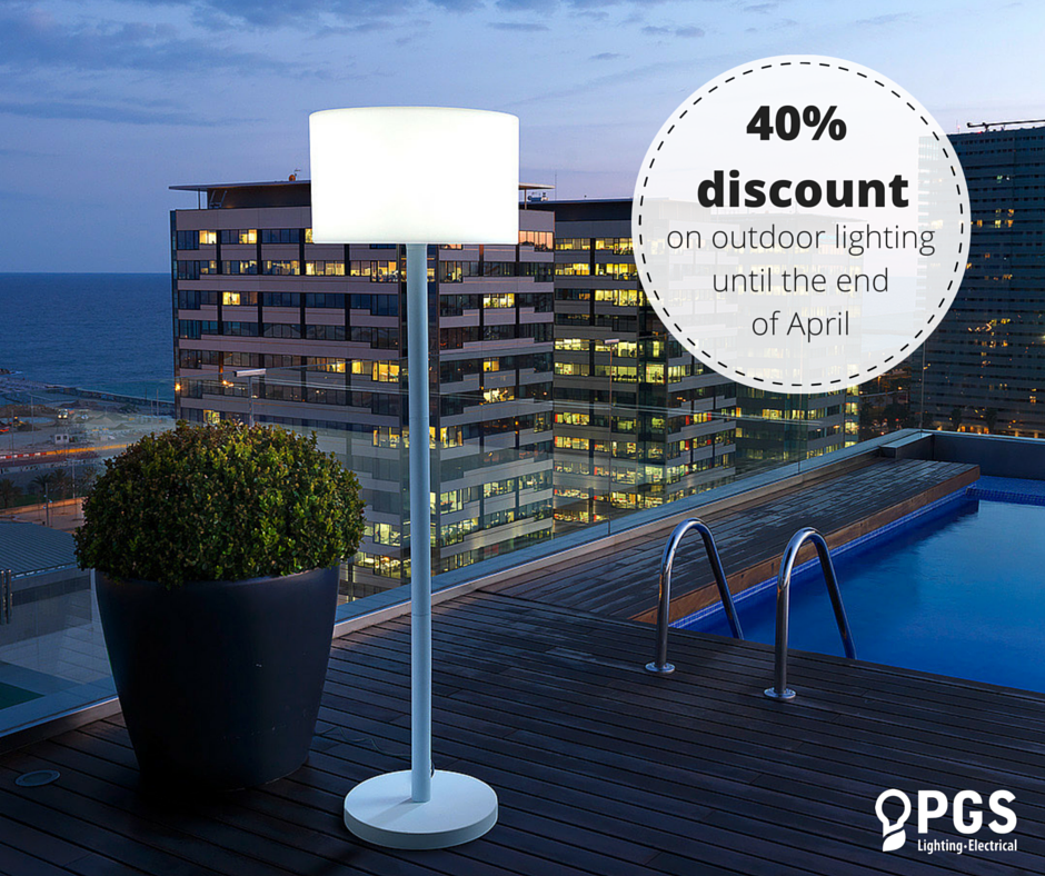 Με αφορμή τα 35 χρόνια λειτουργίας της, η PGS Lighting Electrical βρίσκεται στην ευχάριστη θέση να ανακοινώσει ότι από την 1η Απριλίου και για όλο το μήνα θα προσφέρει εκπτώσεις 40% σε όλα τα φωτιστικά εξωτερικού χώρου, η γκάμα των οποίων περιλαμβάνει επιδαπέδια και κρεμαστά φωτιστικά, προβολείς, LED strips, φαναράκια, και άλλες λύσεις για ατμοσφαιρικό ή λειτουργικό φωτισμό οποιουδήποτε μικρού ή μεγάλου εξωτερικού χώρου.
