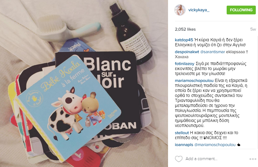 Πλήθος σχολίων συγκέντρωσε μία ανάρτηση της Βίκυς Καγιά, στον προσωπικό της λογαριασμό στο instagram πριν από μερικές ημέρες, η οποία απεικόνιζε παιδικά παραμυθάκια της κόρης της, Bianca, τα οποία ήταν στα γαλλικά.