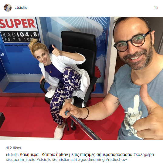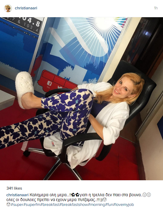 Για άλλη μία φορά η ραδιοφωνική παραγωγός στον Super FM, Χριστιάνα Αριστοτέλους, πήγε στην πρωινή της εκπομπή με το ραδιοφωνικό της ταίρι, Κωνσταντίνο Τσιολή με… τις πιτζάμες.