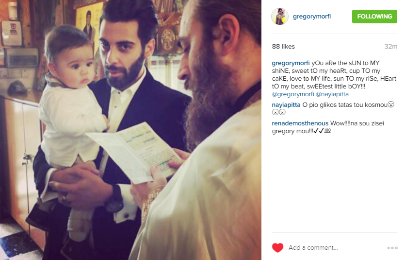 Νονός έγινε ο Gregory Morfi βαφτίζοντας ένα αγοράκι και ο ίδιος θέλησε να το μοιραστεί με τους διαδικτυακούς του φίλους μέσα από τον προσωπικό του λογαριασμό στο instagram.