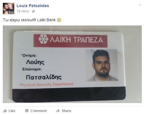 Ο ίδιος, έκανε flashback σε εκείνη την περίοδο της ζωής του αναρτώντας στο προσωπικό του προφίλ στο facebook μία φωτογραφία, όπου απεικονίζεται η κάρτα, όπου αναγράφεται το όνομά του και η εικόνα του για την είσοδό του στην τράπεζα.