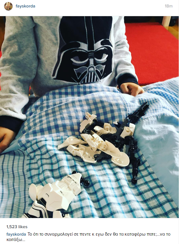 Η Φαίη είναι μία πολύ τρυφερή μανούλα για τους δύο της γιους και περήφανη για τα κατορθώματά τους. Μάλιστα, η παρουσιάστρια ανήρτησε μία φωτογραφία με το γιο της να παίζει, γράφοντας: “Το ότι το συναρμολογεί σε πέντε κι εγώ δεν θα τα καταφέρω ποτέ;...να το κοιτάξω...”