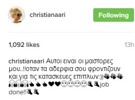 Αγαπάει πολύ να περιποιείται το σπίτι της ενώ μία από τις αγαπημένες της ασχολίες όπως πολύ συχνά λέει μέσα από την εκπομπή της είναι και η κηπουρική. Η ίδια συχνά φυτεύει λουλούδια και λαχανικά καθώς είναι κάτι που την ηρεμεί ενώ της αρέσει να έχει φρέσκα προϊόντα στην κουζίνα της που τα φυτεύει η ίδια. Σε αυτό όπως φαίνεται τη βοηθούν και τα αδέρφια της αφού όπως φαίνεται και από τη φωτογραφία που ανέβασε η ίδια στον προσωπικό της λογαριασμό, οι ίδιοι της έφτιαξαν μία κατασκευή για τον κήπο όπου πάνω θα τοποθετήσει διάφορες γλαστρούλες.
