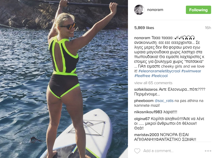 Η παρουσιάστρια, αυτή την περίοδο λανσάρει στην αγορά τη δική της σειρά με μαγιό και η ίδια φροντίζει να τα προμοτάρει φορώντας τα η ίδια κάνοντας surfing και ομολογουμένως η εμφάνισή της, αναστάτωσε τους διαδικτυακούς της φίλους.