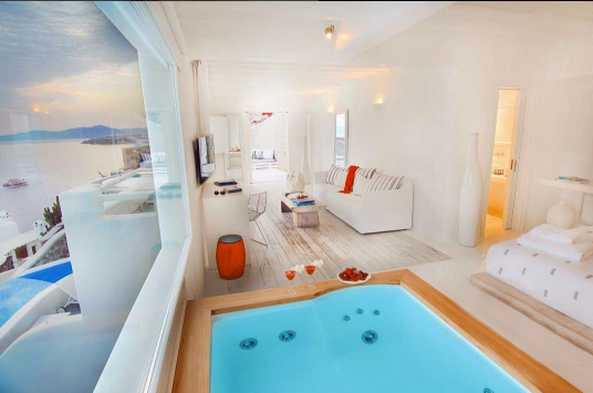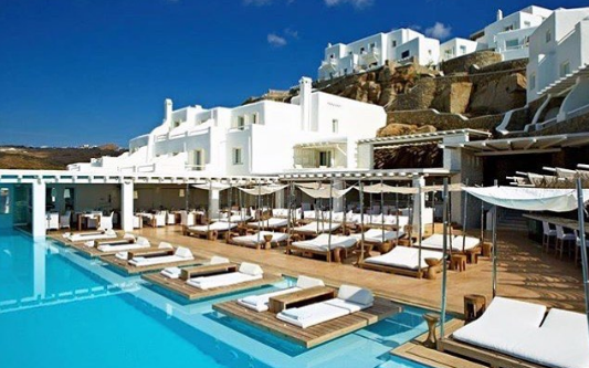 Το ζευγάρι, επέλεξε για τη διαμονή του ένα από τα πιο πολυτελή ξενοδοχείο της Μυκόνου. Πρόκειται για το βραβευμένο ξενοδοχείο Cavo Tagoo, το οποίο βρίσκεται πολύ κοντά στη χώρα της Μυκόνου και διαθέτει απίστευτη θέα, την οποία απολαμβάνουν η Μαρία και ο Πιέρος.