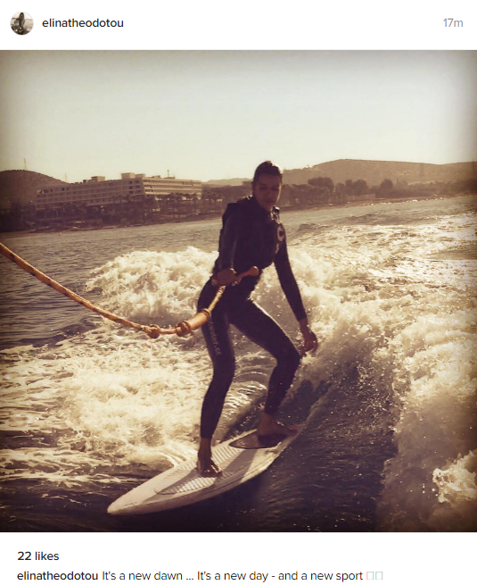 Η ίδια μάλιστα δεν έχασε την ευκαιρία να κάνει θαλάσσια σπορ, τα οποία της αρέσουν πολύ και ανήρτησε κιόλας στον προσωπικό της λογαριασμό στο instagram, όπου απεικονίζεται η ίδια πάνω σε σανίδα να κάνει θαλάσσιο σκι και δείχνει εξοικειωμένη με το άθλημα.