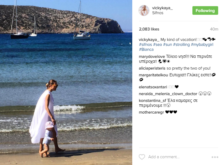 Το μοντέλο και ιδιοκτήτρια σχολής μόντελινγκ ανήρτησε στον προσωπικό της λογαριασμό στο instagram μία φωτογραφία, όπου περπατάει μαζί με την Bianca της στην όχθη της παραλία και δείχνουν να το απολαμβάνουν.