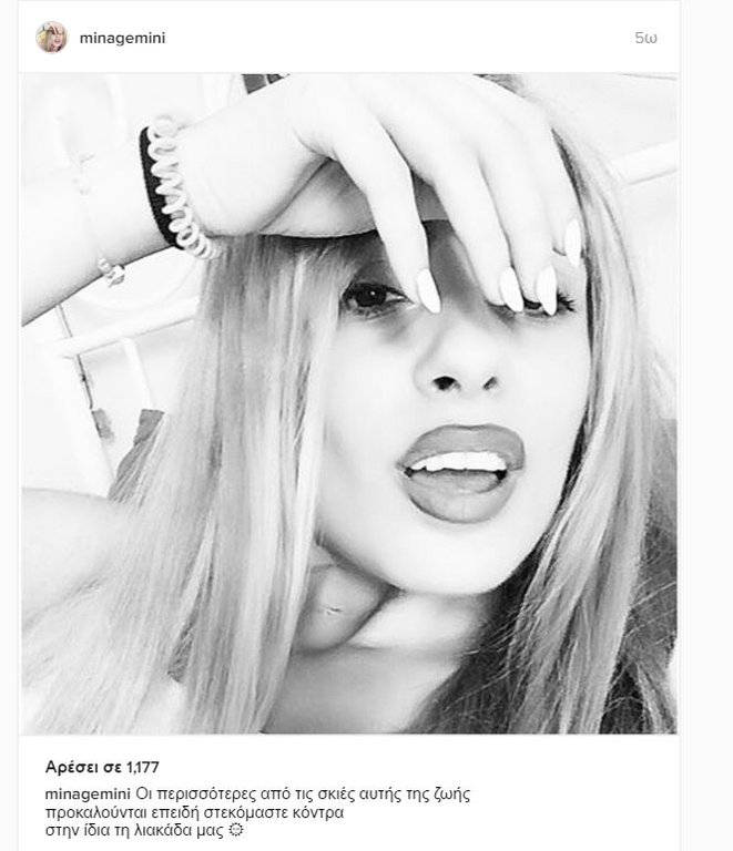 Πέντε μήνες μετά το ατύχημα που κόστισε τη ζωή στον Παντελή Παντελίδη η νεαρή κοπέλα προσπαθεί να σταθεί ξανά στα πόδια της. Προς το παρόν μετακινείται με καροτσάκι και τις περισσότερες ώρες βρίσκεται ξαπλωμένη. Χθες "ανέβασε" μια selfie φωτογραφία της και έγραψε: "Οι περισσότερες από τις σκιές αυτής της ζωής προκαλούνται επειδή στεκόμαστε κόντρα στην ίδια τη λιακάδα μας".