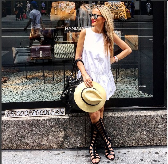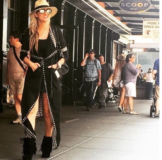 Στο ταξίδι της στη Νέα Υόρκη επέλεξε φορέματα και χαμηλές μπότες δημιουργώντας ένα πιο country look. Τα σύνολα ολοκληρώθηκαν με ψάθινο καπέλο που ενίσχυσε πολύ το χαρακτήρα που ήθελε να δώσει στις εμφανίσεις της.