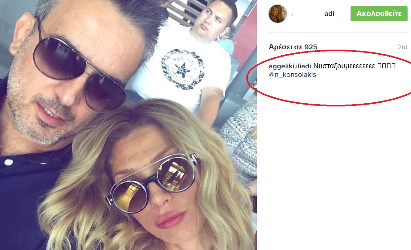 Την Κυριακή η γνωστή τραγουδίστρια ξαναχτύπησε στα social media, ανεβάζοντας δύο φωτογραφίες στο instagram. Στην μία μάλιστα, έχει γείρει στην αγκαλιά του γνωστού καλλιτεχνικού μάνατζερ, Νίκου Κονσολάκη, αποκαλύπτοντας στους φίλους της… την νύστα της! Η συγκεκριμένη φωτογραφία ανέβηκε βλέπετε λίγες ώρες μετά το live της στην Ζάκυνθο, όπου εμφανίστηκε με ένα πολύ καυτό μίνι λευκό φόρεμα στην πίστα, κάνοντας τον αντρικό πληθυσμό να την κοιτά με ανοιχτό το στόμα!