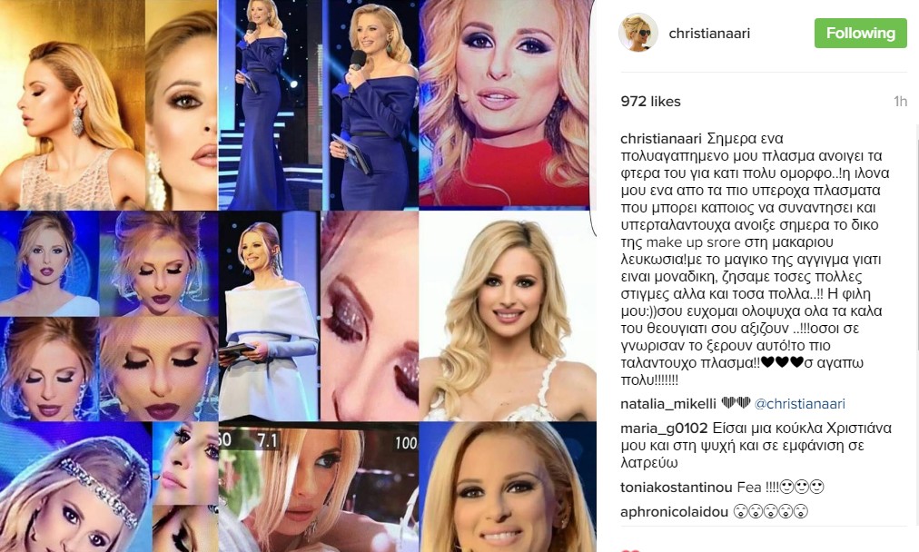 Η Χριστιάνα Αριστοτέλους με ένα πολύ όμορφο και συγκινητικό μήνυμα ευχήθηκε στην προσωπική της make up artist, Ilona Garamvolgyi καλή αρχή στο νέο της επαγγελματικό βήμα, στο άνοιγμα του δικού της χώρου ομορφιάς, Make up Store.