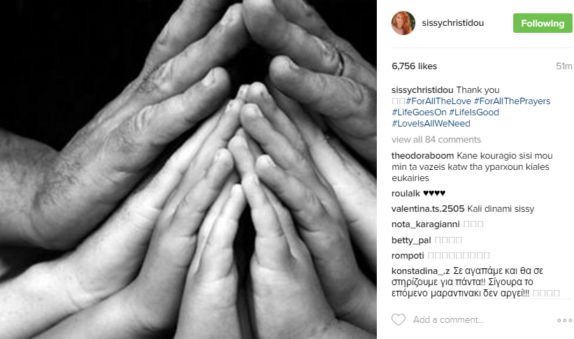 Χιλιάδες ήταν τα μηνύματα αγάπης και συμπαράστασης που εισέπραξε το ζευγάρι μέσα από τα social media και η Σίσσυ θέλοντας να ευχαριστήσει όλον αυτόν τον κόσμο πόσταρε μία φωτογραφία, η οποία συμβολίζει το πόσο ενωμένοι είναι μεταξύ τους σε κάτι τέτοιες στιγμές και φυσικά οι διαδικτυακοί της φίλοι ήταν για ακόμη μία φορά εκεί να την στηρίξουν.