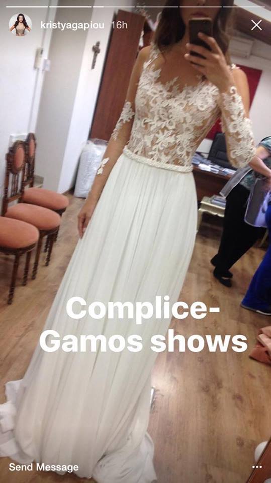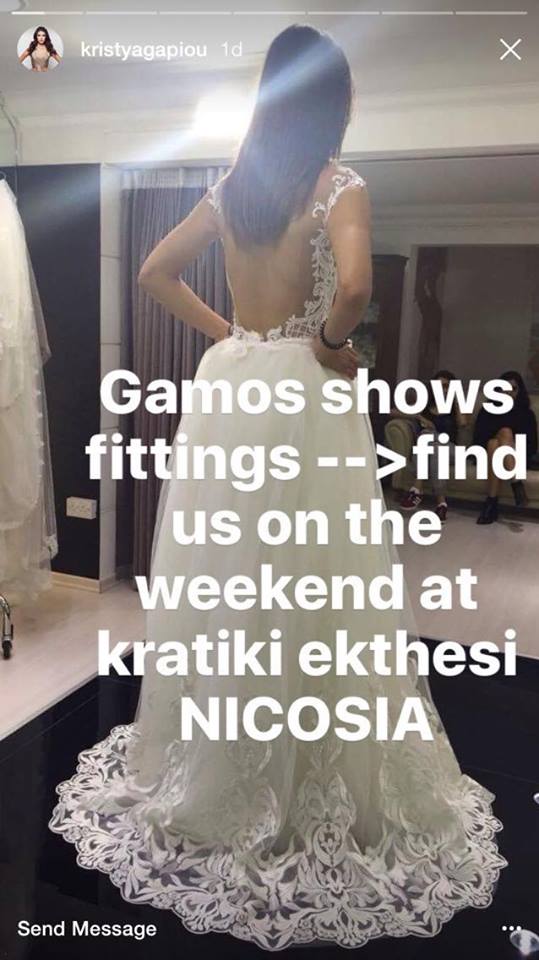Όπως είναι γνωστό η Κρίστη Αγαπίου το Σεπτέμβριο του 2017 θα ντυθεί νυφούλα στο πλάι του συντρόφου της Πανίκου Λειβαδιώτη. Η ίδια έχει ξεκινήσει τις προετοιμασίες για τη μεγάλη μέρα και ήδη έχει αρχίσει να ψάχνει για το νυφικό που θα φορέσει. Ωστόσο λίγο πριν θα φορέσει πολλά νυφικά καθώς η ίδια θα συμμετέχει ως μοντέλο στην έκθεση γάμου που πραγματοποιείται σε λίγες μέρες. Η ίδια αυτές τις μέρες κάνει πρόβες των νυφικών των σχεδιαστών που συμμετέχουν στην έκθεση και έτσι μέσα από τον προσωπικό της λογαριασμό στο instagram την είδαμε να δοκιμάζει διάφορα σχέδια νυφικών.