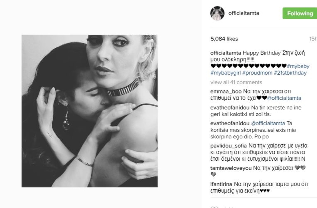 H κόρη της Τάμτα είχε γενέθλια και η τραγουδίστρια δημοσίευσε μία τρυφερή φωτογραφία. H κόρη της, Άννυ έκλεισε τα 21 της χρόνια. Η ίδια ζει στην Πάτρα και σπουδάζει στο Τμήμα Διαχείρισης Περιβάλλοντος και Φυσικών Πόρων. Η τραγουδίστρια ανέβασε μία φωτογραφία στην οποία αγκαλιάζονται σχολιάζοντας: "Happy Birthday Στην ζωή μου ολόκληρη!!!!!! #mybaby #mybabygirl#proudmom #21stbirthday"