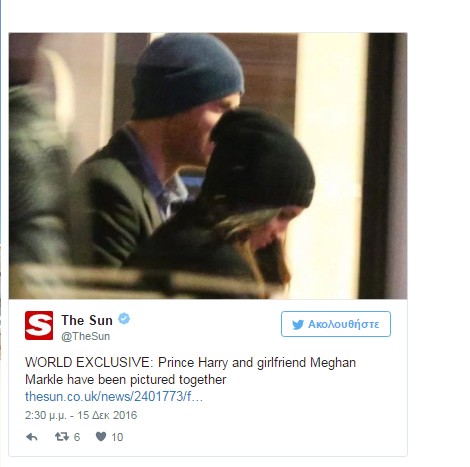 Ο πρίγκιπας Harry και η γνωστή ηθοποιός απαθανατίστηκαν για πρώτη φορά σε ρομαντική βόλτα στην καρδιά του Λονδίνου. Απλά ντυμένοι και ζεστά απολάμβαναν τη βόλτα τους στη στολισμένη βρετανική πρωτεούσα. Τόσο η Meghan Markle όσο και ο πρίγκιπας φάνηκαν να κρατούν χαμηλούς τόνους, ενώ τίποτα δεν τους έκανε να ξεχωρίζουν από το υπόλοιπο πλήθος ενώ φαίναται ότι αυτός ο έρωτας θα μας απασχολήσει πολύ και ίσως να οδηγήσει και στα σκαλιά της εκκλησίας.