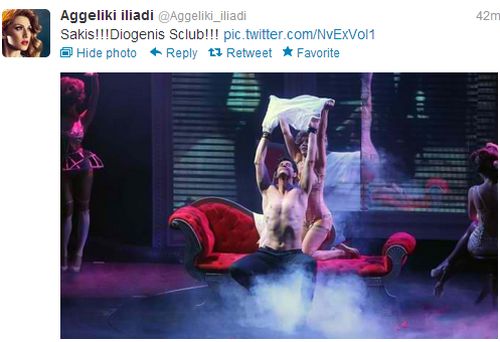 Ανέβασε στο Twitter φωτογραφία του Σάκη Ρουβά απεικονίζοντας τον να χορεύει ημίγυμνος σε έναν καναπέ.