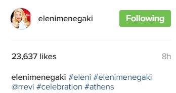 Η Ελένη Μενεγάκη αυτή την εβδομάδα δεν εργάζεται καθώς όπως είναι γνωστό κάνει διακοπές σε εξωτικό μέρος και ενδεχομένως είναι στις Σεϋχέλλες. Και εκεί που όλοι περιμένουν μία φωτογραφία στο instagram από το μέρος που βρίσκεται εντούτοι εκείνη δημοσίευσε μια φωτογραφία της που τη δείχνει να φορά ένα λαμπερό φόρεμα από πρόσφατη φωτογράφηση που έχει κάνει με τη Ρούλα Ρέβη. Αυτή η φωτογραφία από τις πρώτες ώρες "κέρδισε" χιλιάδες likes και είναι λογικό.