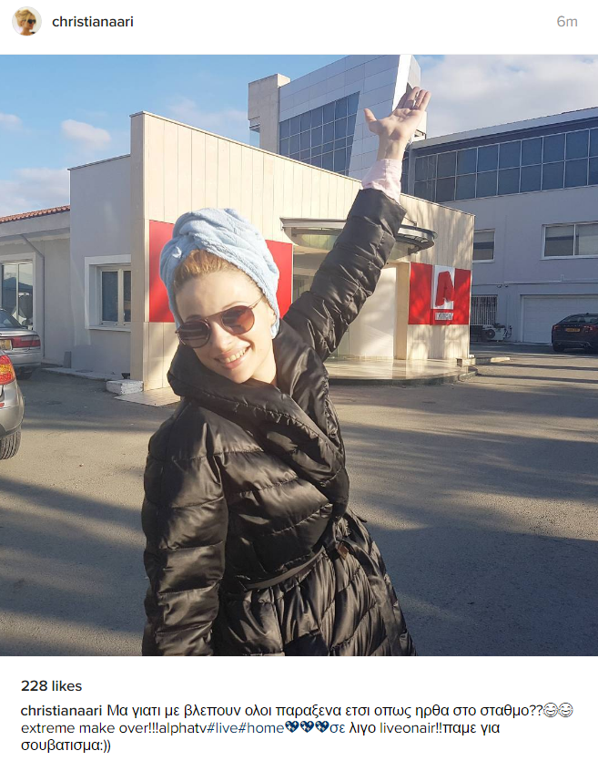 Η ίδια έγραψε στη λεζάντα που τη συνόδευσε: “Μα γιατί με βλέπουν όλοι παράξενα έτσι όπως ήρθα στο σταθμό! Σε λίγο liveonair!! Πάμε για σοβάτισμα:)”
