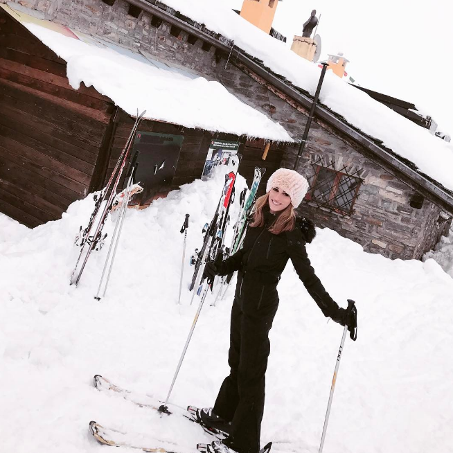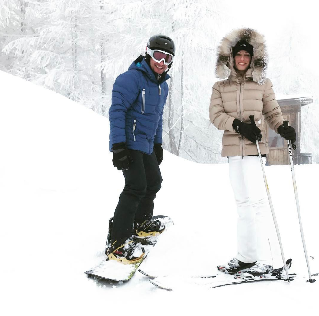 Τοζευγάρι βρίσκεται στο Mont Blanc de Courmayeur, στα σύνορα με τις γαλλικές Άλπεις κάνοντας σκι και απολαμβάνοντας το κατάλευκο τοπίο.