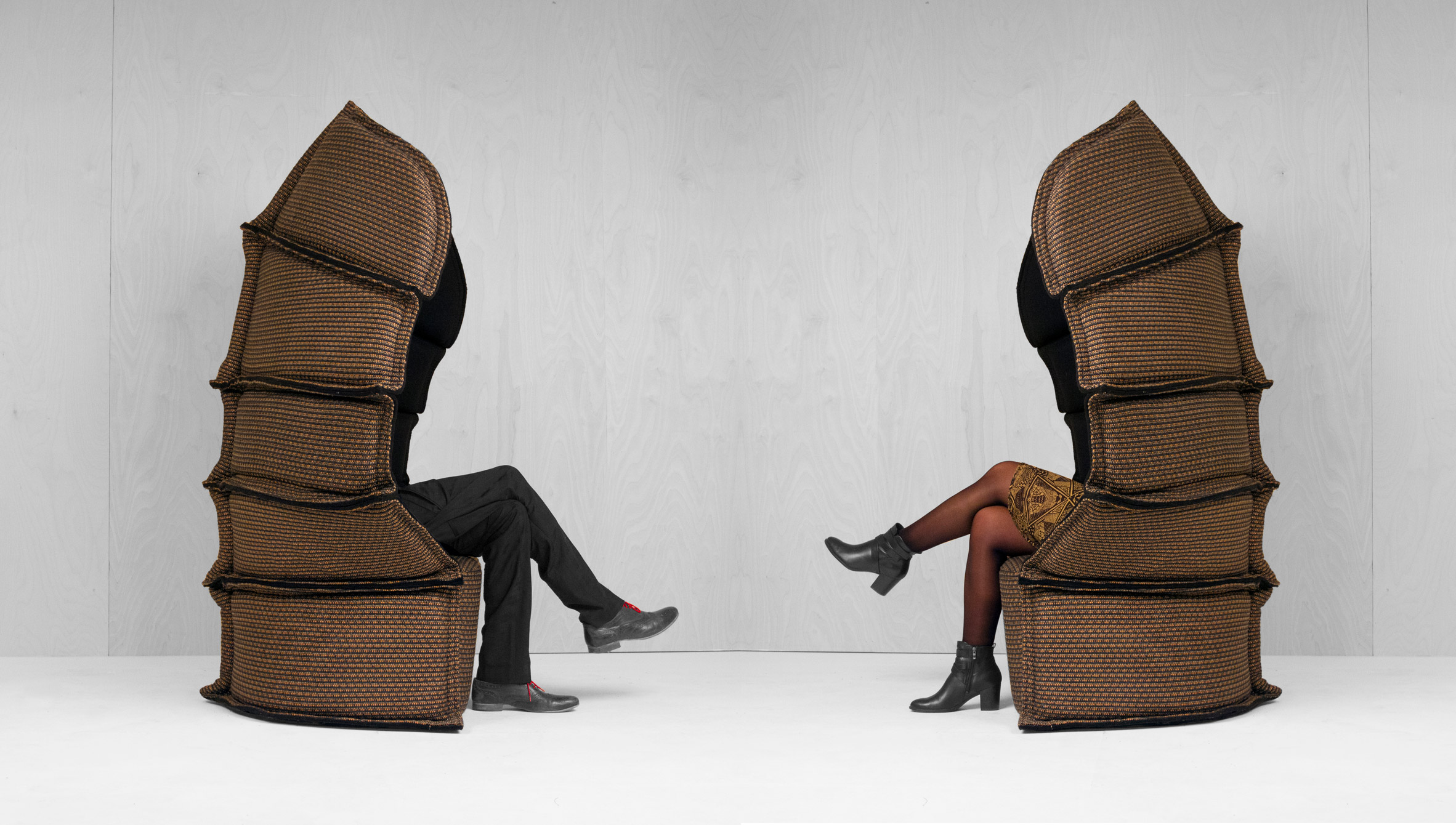 Η νέα πολυθρόνα των δύο σχεδιαστών είναι μέρος της συλλογής Armour Mon Amour που είναι εμπνευσμένη από την γιαπωνέζικη στολή των Σαμουράι. Το επιβλητικό αυτό κάθισμα φιγουράρει αυτό τον καιρό στο Μιλάνο και εκτός από τον ψηλό του σχεδιασμό, έχει και την ιδιαιτερότητα ότι χρησιμοποιεί τόπια από τις νέες συλλογές της Bolon που εξειδικεύεται στα πατώματα.