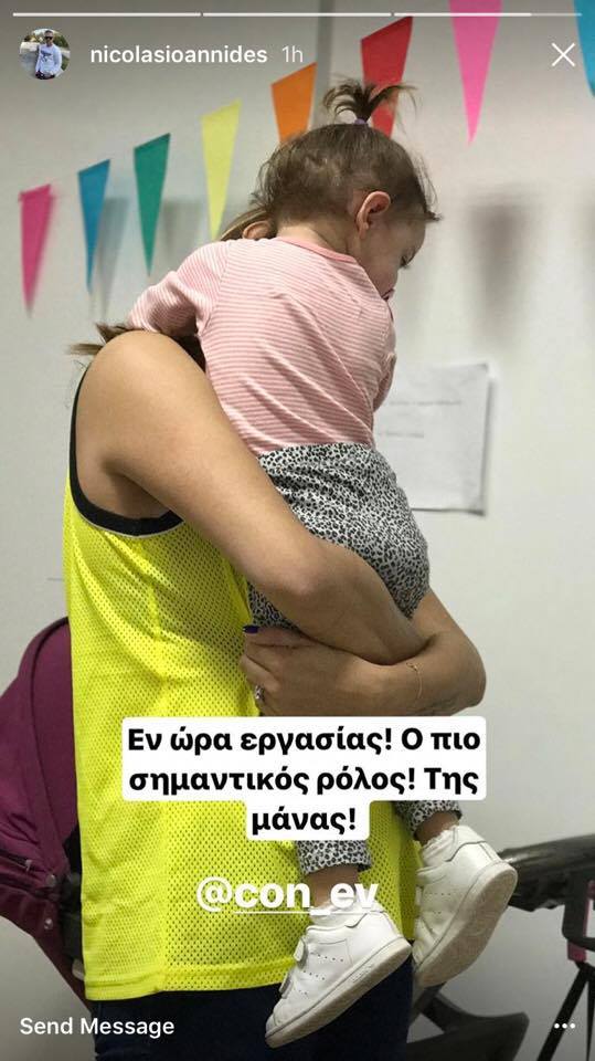Ο συνεργάτης της στην εκπομπή, Νικόλας Ιωαννίδης, ανήρτησε μία φωτογραφία στον προσωπικό του λογαριασμό στο instagram, όπου η Κωνσταντίνα βρίσκεται στο γραφείο τους έχοντας στην αγκαλιά της την κόρη της!