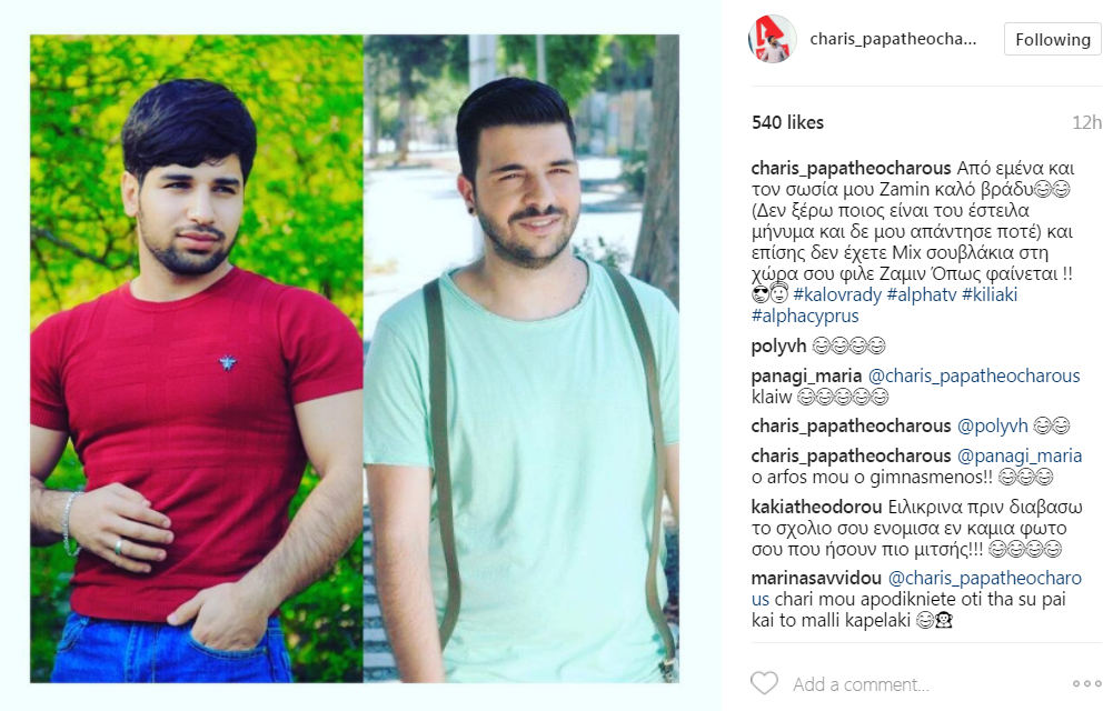 Μάλιστα, όπως επισήμανε στη λεζάντα που τη συνόδευσε, ο ίδιος θέλησε να επικοινωνήσει μαζί του, γράφοντας: “Από εμένα και τον σωσία μου Zamin καλό βράδυ (Δεν ξέρω ποιος είναι του έστειλα μήνυμα και δε μου απάντησε ποτέ) και επίσης δεν έχετε Mix σουβλάκια στη χώρα σου φιλε Ζαμιν Όπως φαίνεται!”.