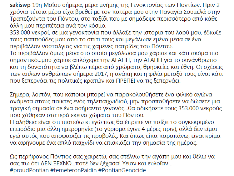 Δείτε τη μακροσκελή ανάρτησή του στο instagram