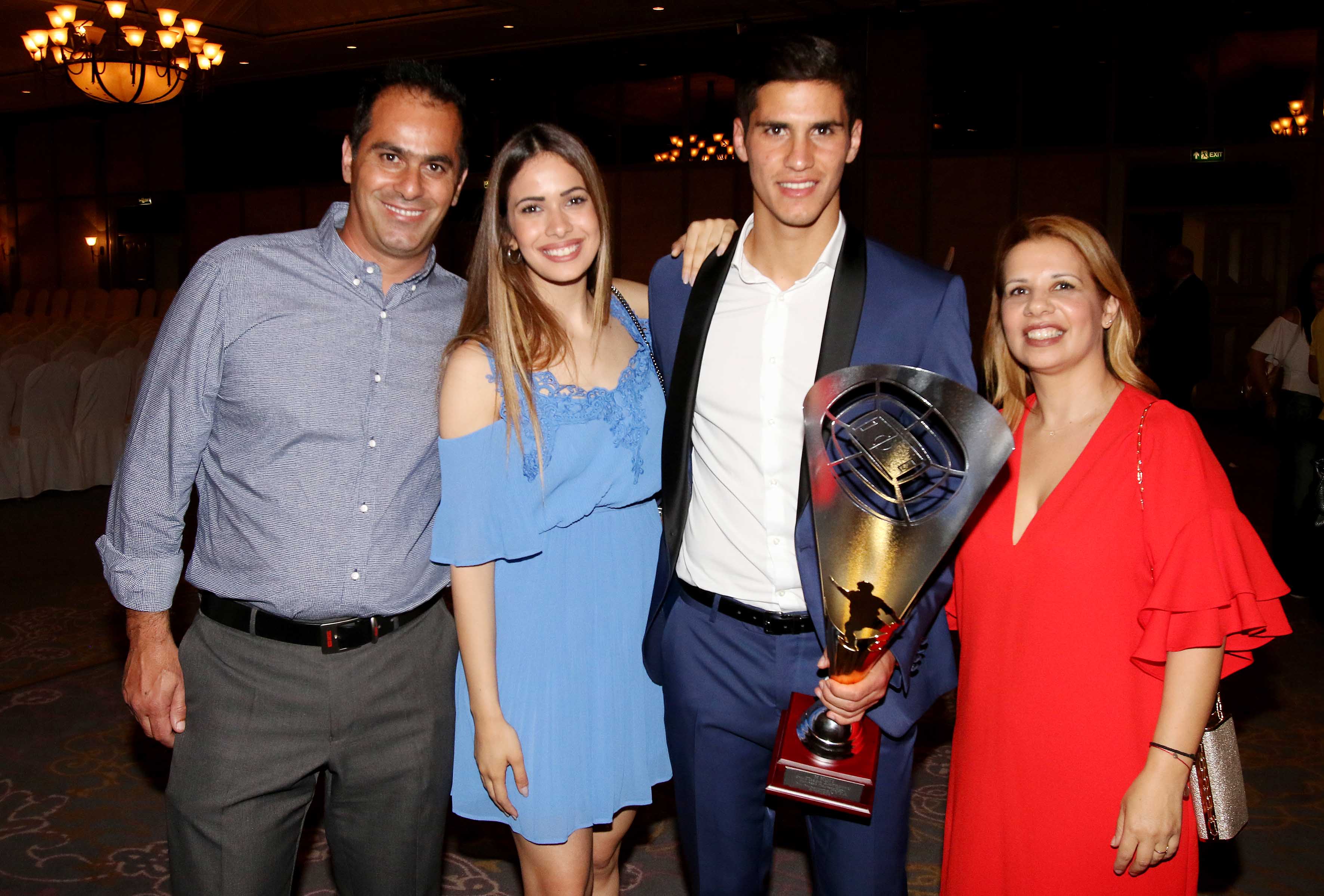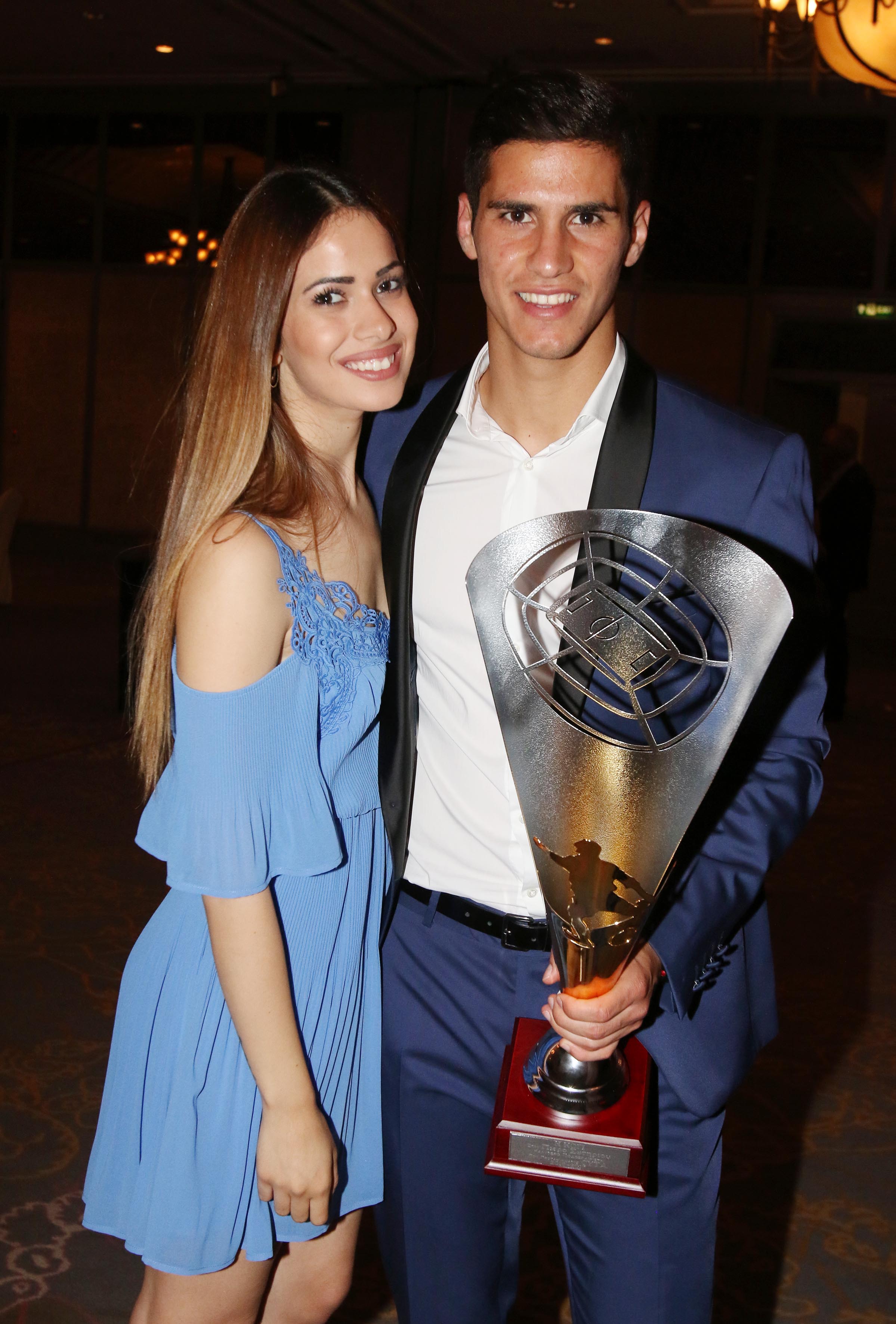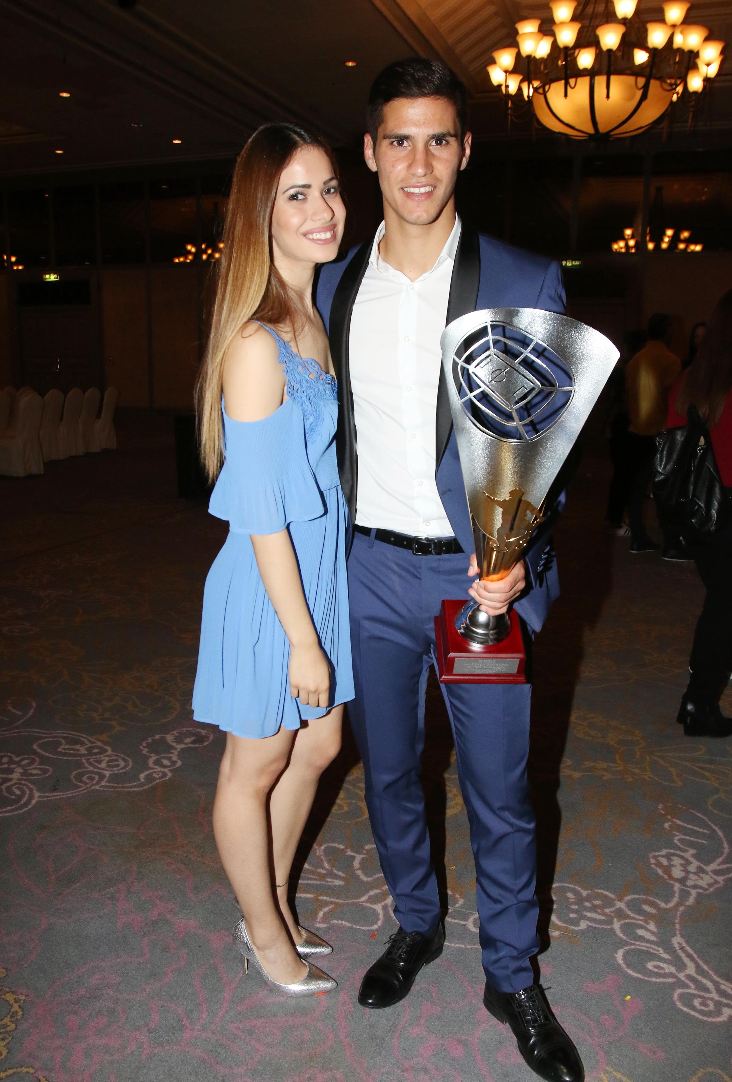 Χθες πραγματοποιήθηκε η τελετή βραβεύσεων της ΚΟΠ για το έτος 2016-2017 στο "Hilton Park" Όπως ήταν αναμενόνεμο, τα βλέμματα τραβηξε ο Πιέρος Σωτηρίου ο οποίος πήρε το βραβείο του κορυφαίου ποδοσφαιριστή λίγες μέρες πριν αναχωρήσει για τη Δανία και τη νέα του ομάδα. Ο ίδιος συνοδεύτηκε από τη σύντροφό του και τους γονείς του καθώς σε μία τόσο σπουδαία μέρα για εκείνον δεν θα μπορούσαν να λείπουν από κοντά του τα αγαπημένα του πρόσωπα.Η Μαρία Κορτζιά ντυμένη με ένα mini γαλάζιο φόρεμα πόζαρε γεμάτη περηφάνια δίπλα από το σύντροφό της, τον οποίο και θα ακολουθήσει σε αυτό το νέο μεγάλο βήμα στην καριέρα του και θα μετακομίσει μαζί του στη Κοπεγχάγη.