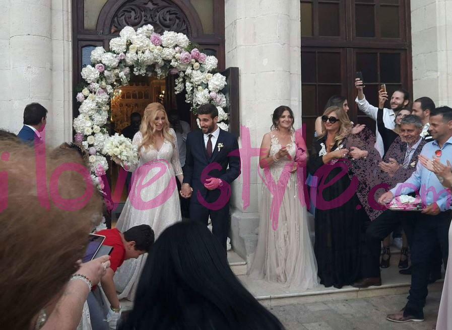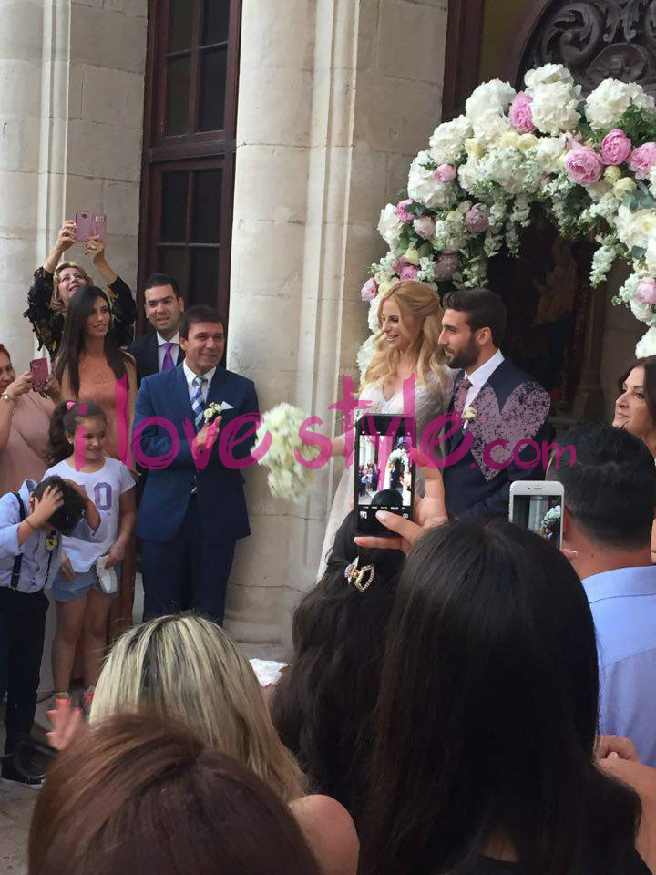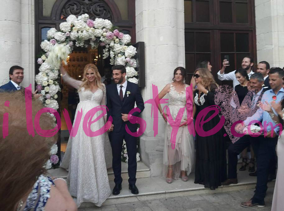 Η παρουσιάστρια και ο ποδοσφαιριστής εξήλθαν της εκκλησίας, με τους οικείους τους να τους ρίχνουν ρύζι και ροδοπέταλα για “βίον ανθόσπαρτον”, όπως επιτάσσει το έθιμο.