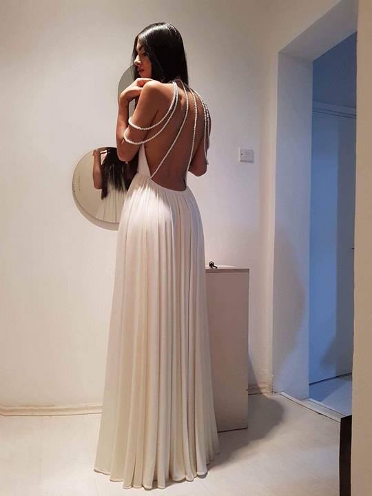 Με ένα υπέροχο νυφικό που αφήνει ακάλυπτη την πλάτη σε αρχαιοελληνικό ύφος εμφανιστήκε στο γαμήλιο party της η Άντρεα Κυριάκου. Το νυφικό που φέρει την υπογραφή της Κύπριας σχεδιάστριας Λουκίας Κυριάκου κατάφερε να κλέψει τις εντυπώσεις αποσπώντας τα πιο κολακευτικά σχόλια από τους καλεσμένους. Η ίδια επέλεξε να αλλάξει και το κτένισμα στα μαλλιά της αφού στην εκκλησία επέλεξε ένα πιο wavy ύφος ενώ τώρα είναι με ίσια μαλλιά. Πανέμορφη πραγματικά.