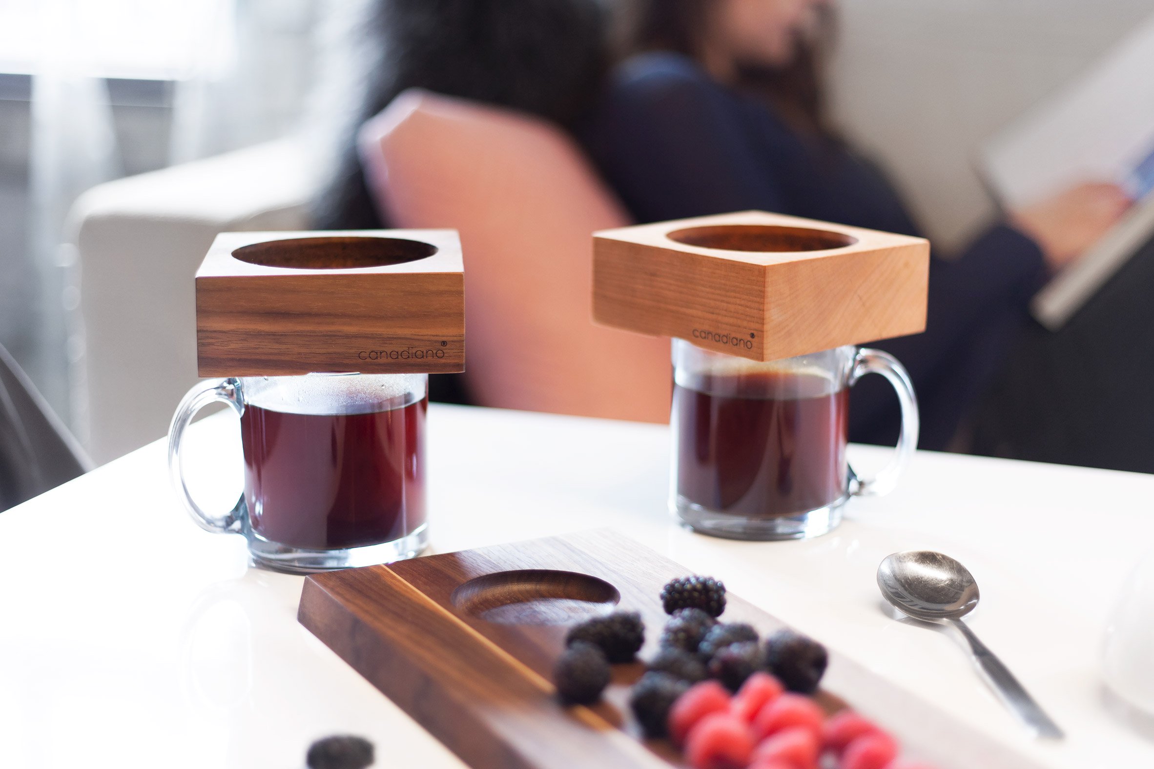 Αυτό το τετραγωνισμένο ξύλο φτιάχνει καφέ! Χρειάστηκαν 6 μήνες έρευνας και δοκιμάστηκαν διάφορες εφαρμογές και τεχνοτροπίες από την ομάδα της Canadiano που συμβουλεύτηκε ξυλοκόπους και ειδικούς για το πώς να κρατήσουν ένα συμπαγές ξύλο ως τη βάση για φιλτράρισμα του καφέ. Το εγχείρημα πέτυχε και το αποτέλεσμα είναι εκπληκτικό και πολύ εύχρηστο.