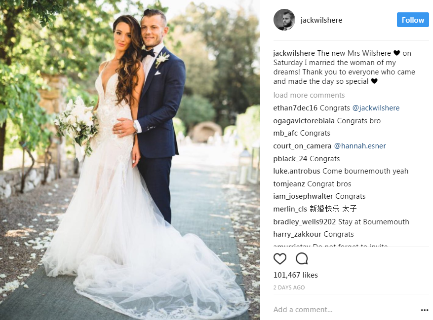 Την γυναίκα των ονείρων του παντρεύτηκε ο ποδοσφαιριστής της Arsenal, Jack Wilshere, όπως χαρακτηριστικά ανέφερε ο ίδιος, στο πρώτο post που έκανε στον προσωπικό του λογαριασμό στο instagram λίγο μετά τον γάμο τους.