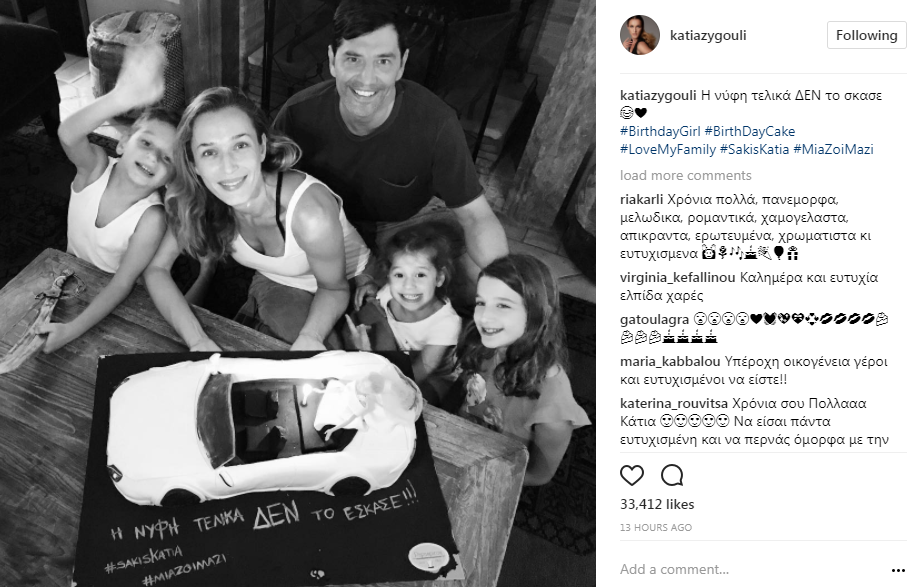 Η Κάτια Ζυγούλη, στις 3 Ιουλίου, γιόρτασε εκτός από τον γάμο της και τα γενέθλιά της. Μία εντυπωσιακή τούρτα περίμενε το πανέμορφο μοντέλο, όπου σε αυτήν υπήρχε ένα αυτοκίνητο και η λεζάντα: “Τελικά η νύφη δεν το έσκασε”.