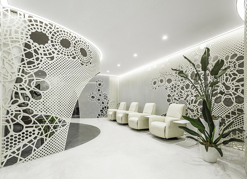 Το Archstudio μόλις ολοκλήρωσε τον σχεδιασμό και την υλοποίηση του δεύτερου ινστιτούτου αισθητικής "Lily Nails" που βρίσκεται στο Πεκίνο. Κυρίαρχο στοιχείο του χώρου είναι το άσπρο, διάτρητο μεταλλικό διαχωριστικό, που έξυπνα διαμορφώνει τους χώρους και τα τμήματα, καθοδηγώντας έτσι τον πελάτη στην υπηρεσία που επιθυμεί.